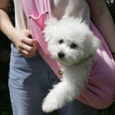 우선적으로 적합한 크기와 디자인의 강아지 이동가방을 선택한 후 안전하게 강아지를 수납합니다.